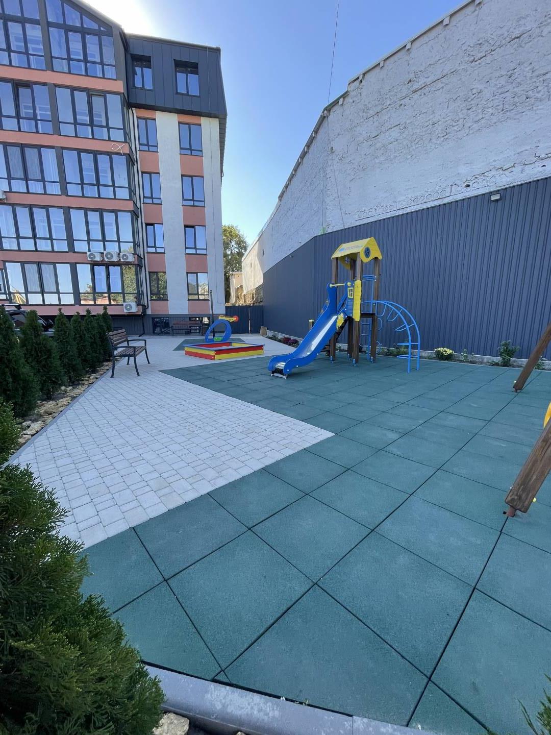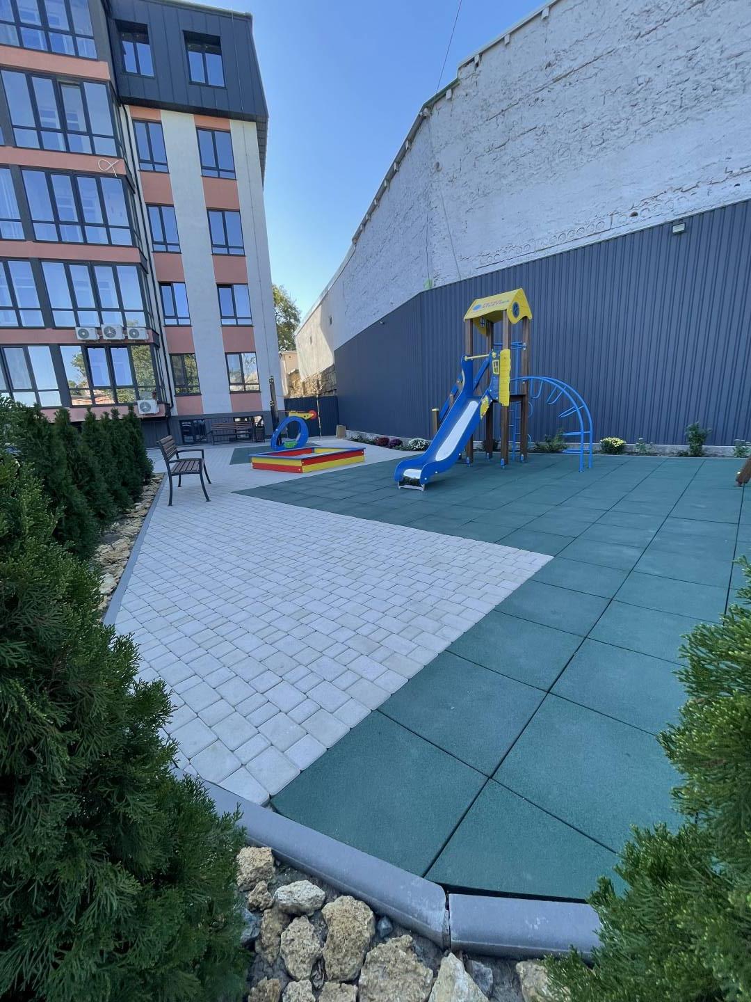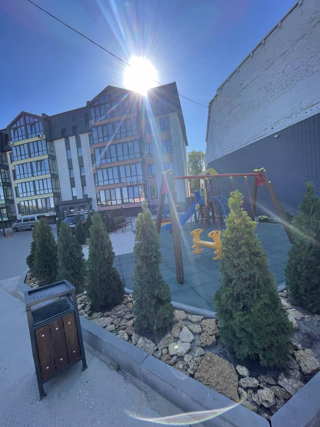 Дорога до центру міста займає 10 хвилин машиною. У будинку система охорони із камерами відеоспостереження. Прибудинкова територія - закритий внутрішній двір із сучасним дитячим та спортивним майданчиками, а також озелененими зонами відпочинку.